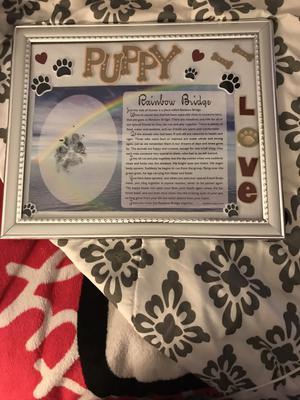 🐶🐾💔🐶🐾💔🐶🐾💔😢❤️😢❤️. As you can see by the pictures below, you can see how much he was loved. I wanted to share the photos of the frames that I made for my baby boy for his certificate of cremation and his paw print so we could cherish them forever.